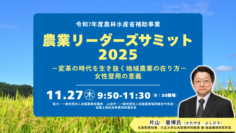「農業リーダーズサミット2025 -変革の時代を生き抜く地域農業の在り方- 女性登用の意義」日時:2025年11月27日(木)9:50~11:30(開場 9:30)