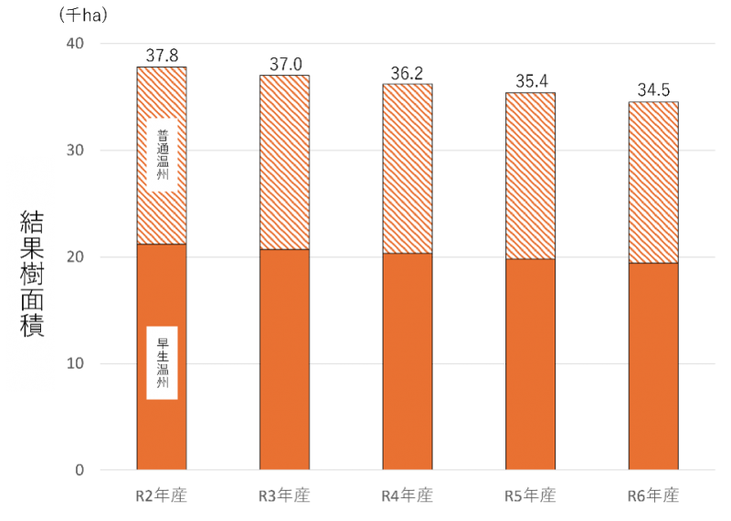 (出典:農林水産省「令和6年産みかんの結果樹面積、収穫量及び出荷量」より作成)