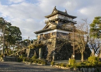 丸岡城丸岡城は別名霞ヶ城とも呼ばれ、平野の独立丘陵を利用してつくられた平山城です。春の満開の桜の中に浮かぶ姿は幻想的で、ひときわ美しいものとなっています。戦国時代の天正4年(1576年)一向一揆の備えとして、織田信長の命を受けて柴田勝家の甥・勝豊が築きました。標高27mの独立丘陵を本丸として天守を築き、その周囲に二の丸と内堀、その外側に三の丸と外堀を巡らせていました。丸岡城天守は、江戸時代以前に建てられ当時の姿で現在まで残っている現存12天守の1つです。昭和23年の福井地震により石垣もろとも完全に倒壊しましたが、天守の材料や石垣などの主要部材の多くを再利用して昭和30年に修復修理されました。現存12天守の中で、完全に倒壊した状況から修復された天守は唯一丸岡城天守のみです。現在立ち続けている古式の風格のある姿は、消滅の危機という困難な道のりを経ても立ち上がり復興してきた証であり、その歴史は他にはない波乱の運命を歩んだものです。