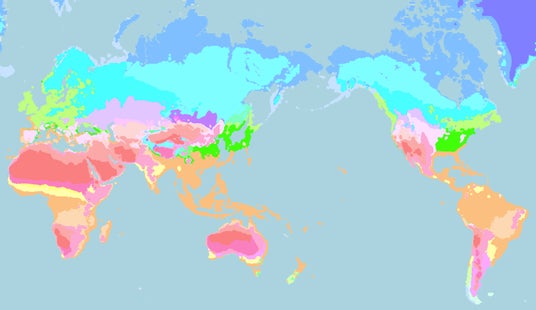 気象条件の似ているエリアを同じ色で塗り分けた世界地図