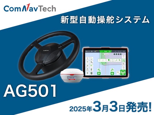 株式会社HOSACは、新たな自動操舵システム「コムナビ AG501(以下、AG501)」を、2025年3月3日に発売した。圃場登録機能を新たに搭載し、作業効率とデータ管理の利便性を向上させている。注文は、HOSAC公式ウェブサイトおよび正規販売店にて受け付けている。