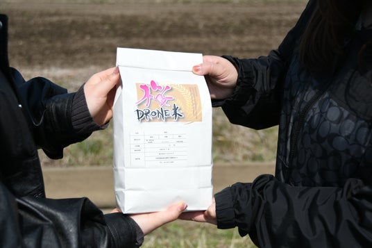 寄附者は、ドローンについての簡単な講習を受けたのち、TUGUYOがドローンを使って種まきや薬剤散布などをしている田んぼで操縦体験が行える。その田んぼで実際に収穫されたお米「ドローン米」2kgもプレゼントされる。
