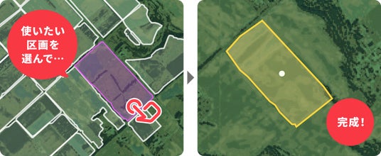 筆ポリゴンから作成する方法では、農地の区画情報を読み込み、タップするだけで圃場が作成可能。