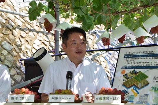 山梨県、「有機薄膜太陽電池」を活用したぶどう栽培で着色向上