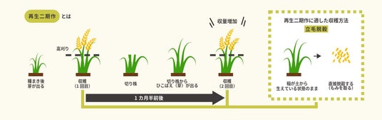 さらに、1シーズンに収穫を2度行う再生二期作への対応として、高刈りおよび立毛脱穀を行うことができる構造を採用し、収量向上と省力化を実現できる。