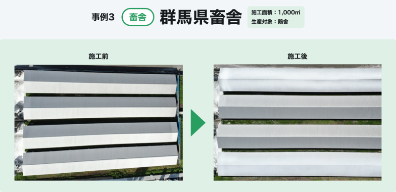 こうした高温対策では、施設の屋根に塗布することで光を反射し、施設内部の温度上昇を抑制する「遮光・遮熱剤」の散布も有効だ。その一方で、現場では「屋根が高く地上からの塗布が難しい」「屋根に登るのが不安」「大面積を素早く散布したい」など、施設の構造によってさまざまな課題があるという。