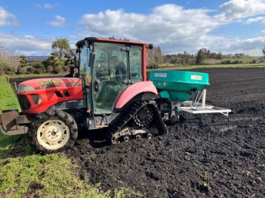 機械による高機能バイオ炭散布の様子(イシハラフーズ圃場)