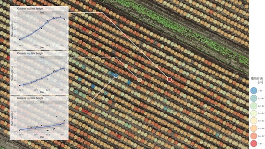さらに、ドローンで観察・把握した情報を圃場走行ロボットに与え、人に代わってモニタリングする研究開発も並行して進めるとしている。