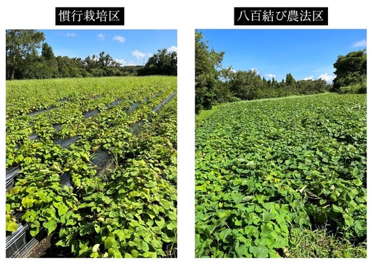 なお、収穫されたサツマイモは一定期間貯蔵されるが、栽培協力した生産者からは、収穫から半年が経過しても「八百結び農法区で収穫されたサツマイモは、他の圃場で収穫されたサツマイモと比較して、腐れが出ることなく良質な状態を保っている」との報告が上がっているという。
