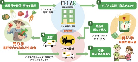 信濃毎日新聞とヤマト運輸、規格外農産品のマッチングアプリ「HELASオンラインマルシェ」を提供開始