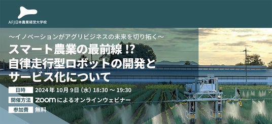 「スマート農業の最前線!?自律走行型ロボットの開発とサービス化について」日時:2024年10月9日(水) 18:30~19:30