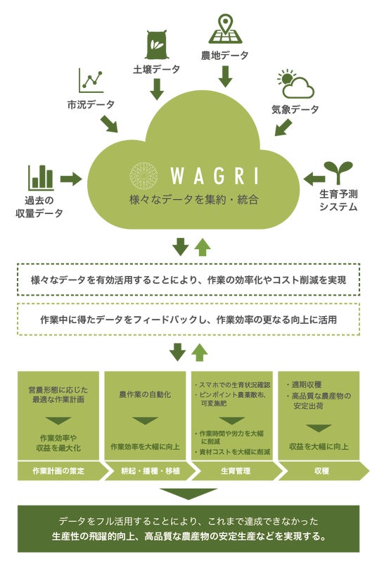 ・WAGRIから取得した膨大な農業関連データをもとに、気象や土壌、作物の成長状況などを多角的に分析し、特定の農場に合わせた最適な栽培方法を提案