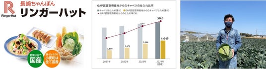 株式会社リンガーハットは、国内562店舗、海外8店舗で長崎ちゃんぽんを提供するチェーン店を運営しています。2009年に全量国産野菜に切り替え、年間1万7千トンもの野菜を使用しています。2017年からは、より安全で持続可能な国産野菜の提供を目指し、主要野菜のキャベツからJGAP認証農産物の調達を開始しました