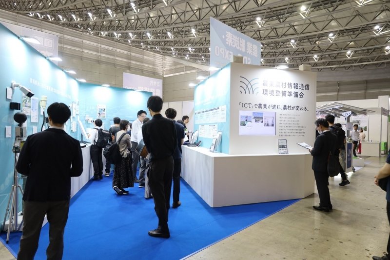 会場には、補助金を活用して導入できる機器が展示されていた。通信インフラと合わせて導入することで、様々なスマート農業機器の購入に補助が使える。